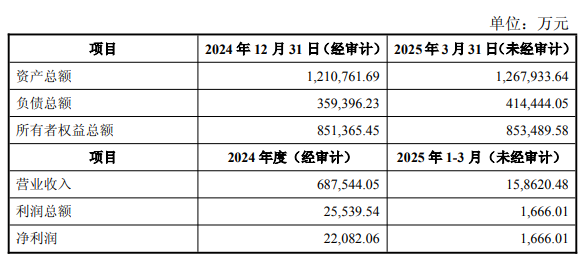 标的公司2024年度与2025年第一季度营收分别为68.75亿元、15.86亿元,净利润分别为2.21亿元、1666.01万元。